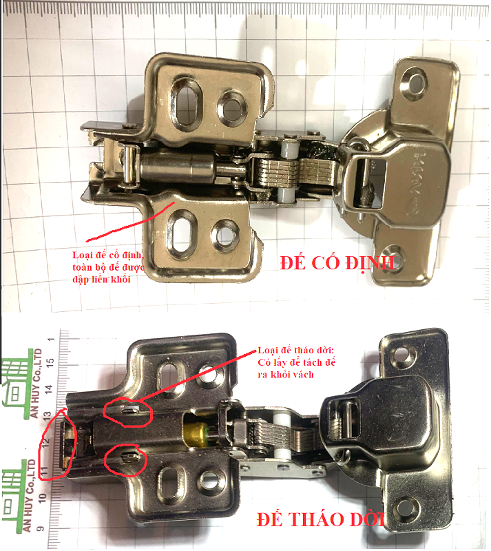 Phân loại bản lề bật đế cố định và đế tháo dời