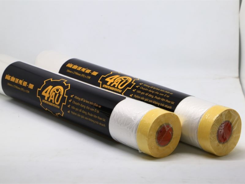 Băng dính giấy che sơn ô tô: Phù hợp với môi trường sơn tĩnh điện, cố định nilon hoặc giấy che chắn trong quá trình sơn, chịu được dung môi và nhiệt độ cao của phòng sơn. Lớp nilon được cấu tạo đặc biệt để sơn không bị trơn trượt ra ngoài.