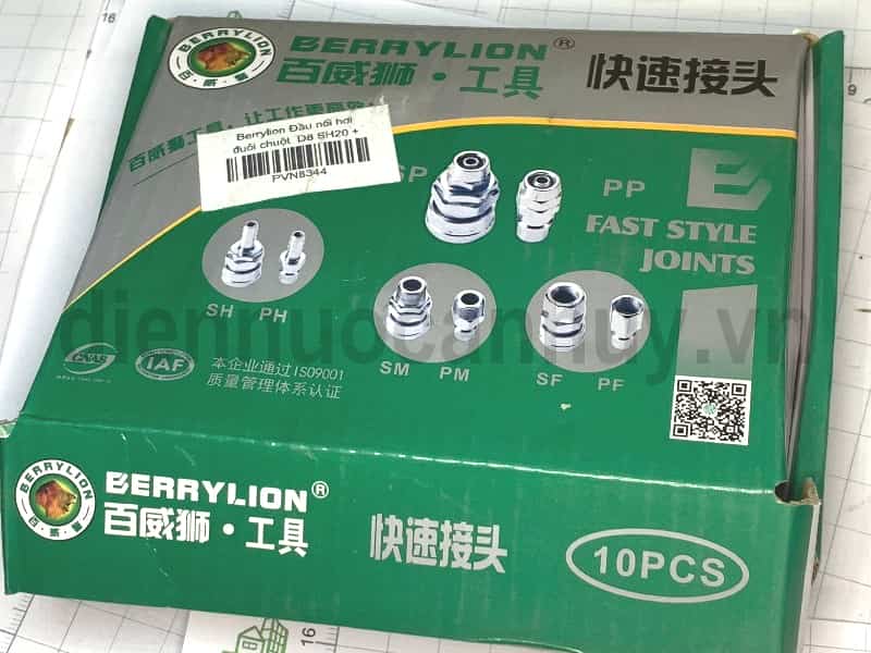 Khớp nối nhanh khí nén Berrylion SH20.PH20 lòng trong ống phi 8mm . Bộ đầu nối hơi đuôi chuột giá rẻ . Hàng phổ thông tiết kiệm
