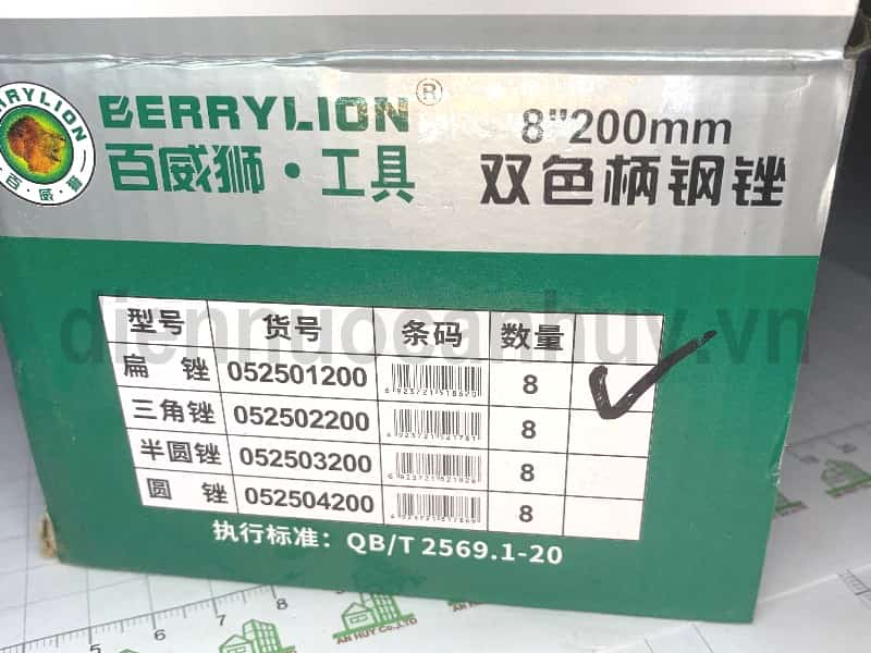 Dũa bằng 8 inch Berrylion T12 Model 052501200. Dụng cụ dũa dẹt mài sắt thô mịn tay cầm chống trượt