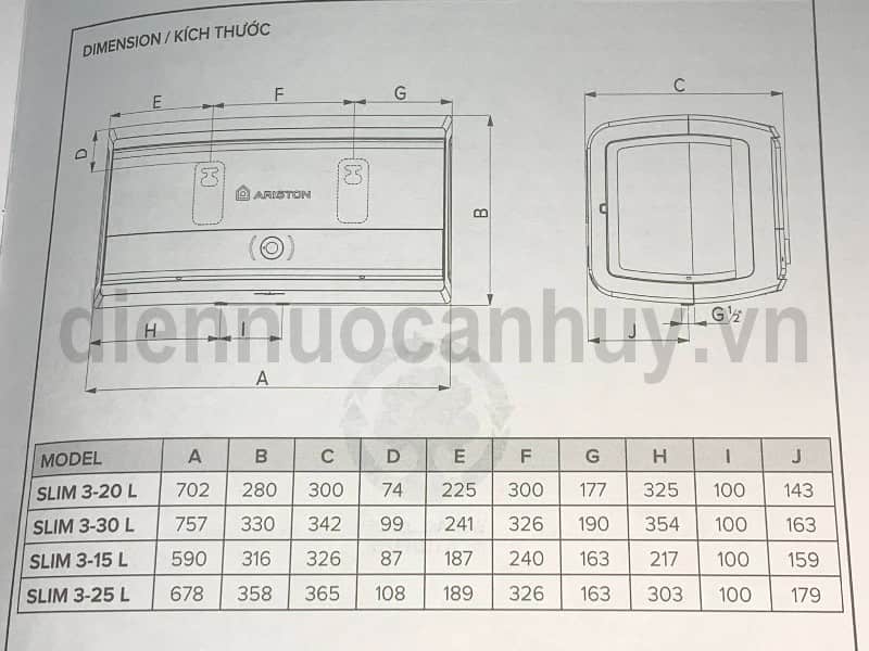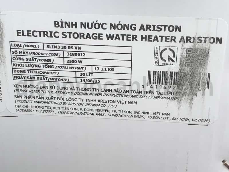 Bình nóng lạnh 30 lít Ariston SLIM3 30 RS VN Sắt tráng men 2500W