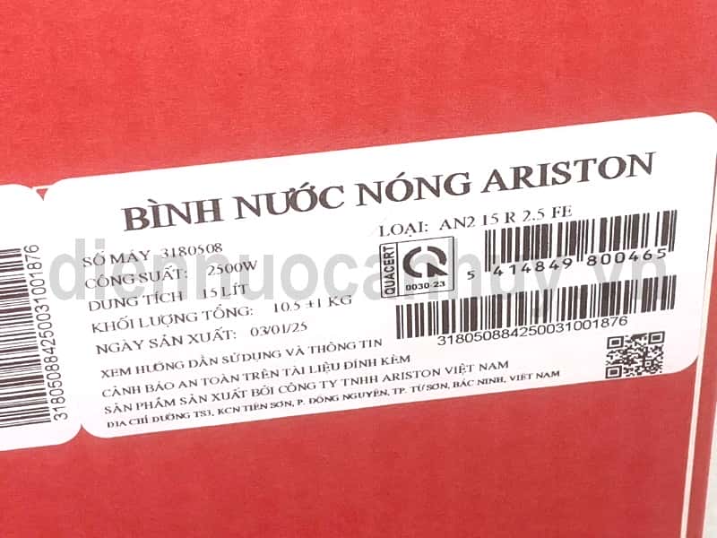 Bình nước nóng ARISTON vuông 15 lít thường AN2 15R 2.5 FE