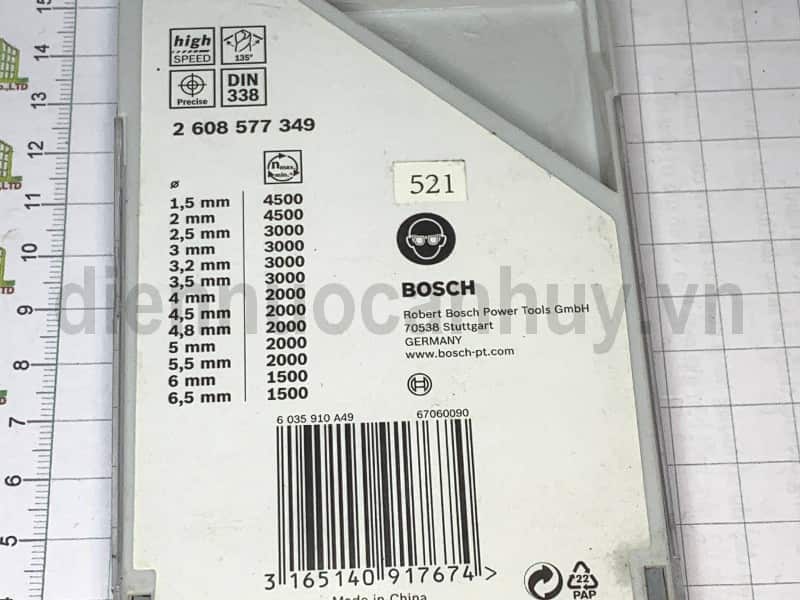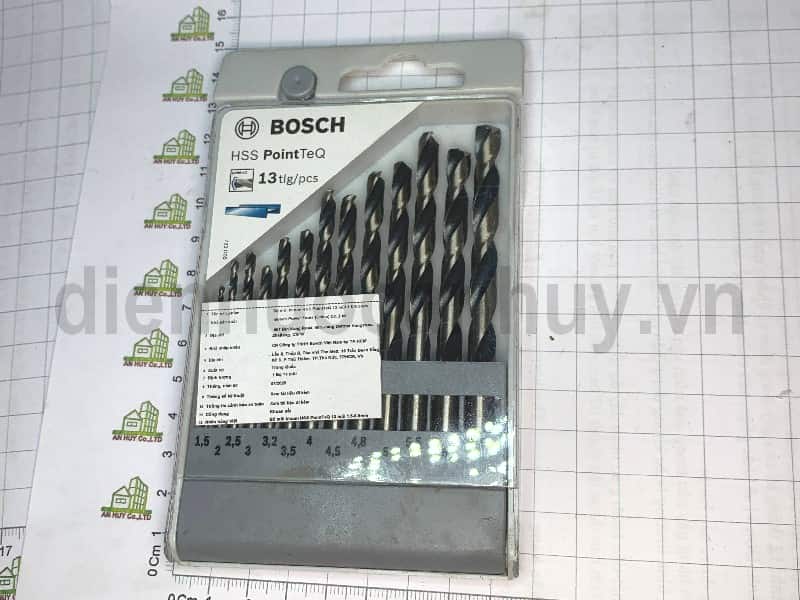 Bộ mũi khoan sắt Bosch HSS PointTeQ (13 cây, mũi trắng) - Từ 1.5mm đến 6.5mm (Góc 135° chống trượt)