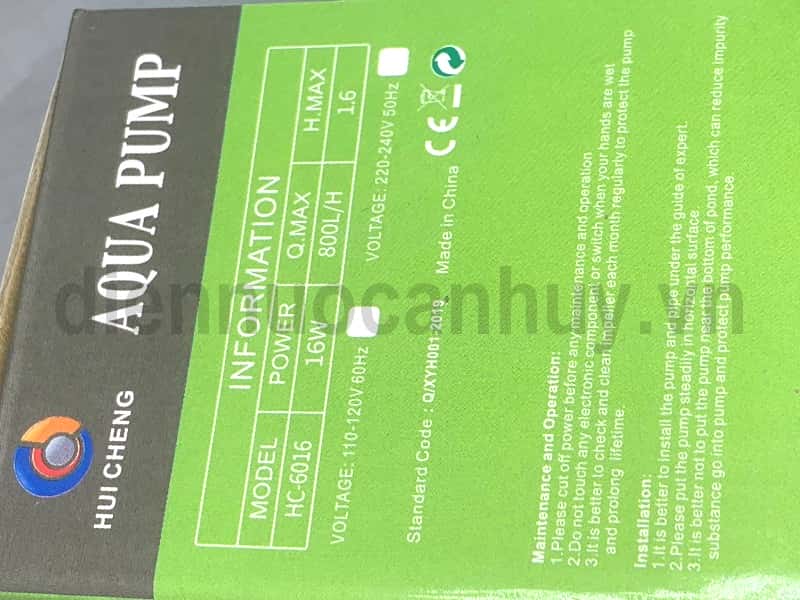 Chiều cao bơm tối đa: 1.6m (bơm đẩy được nước cao 1.6m)