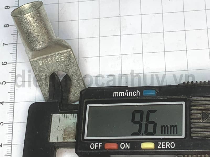 ký hiệu 25-8, nghĩa là tiết diện dây điện tối đa để lắp vào đầu cos là 25 mm2, đường kính bắt bu lông là 8mm