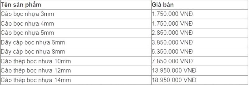 - Phần bọc nhựa: Kết cấu phần bên ngoài cáp được phủ lớp nhựa PVC mầu trong suốt, chúng có công dụng chống lại sự tiếp xúc trực tiếp của lõi thép với môi trường bền ngoài để ngăn quá trình gỉ sét.