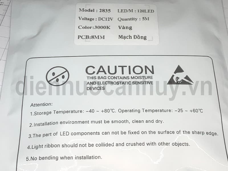 Dây đèn led trung quốc vỏ trắng ánh sáng vàng 3000K