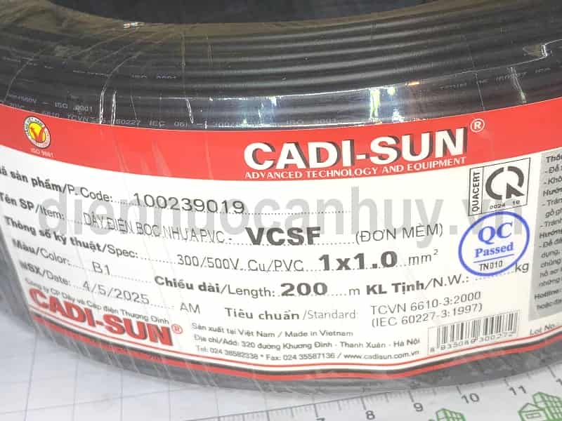 Dây cáp điện CADI-SUN VCSF là loại dây điện ruột đồng cách điện PVC (Polyvinyl Chloride) một lõi, được thiết kế chuyên biệt cho các ứng dụng điện hạ thế trong hệ thống điện dân dụng và công nghiệp. Sản phẩm đáp ứng đầy đủ các tiêu chuẩn kỹ thuật nghiêm ngặt, đảm bảo hiệu suất truyền dẫn điện ổn định, an toàn và độ bền cao.