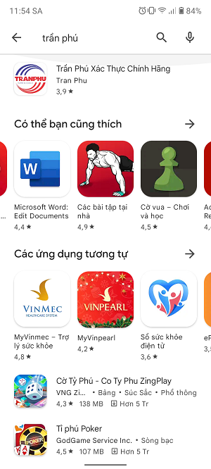 Vào "Cửa hàng Play" trong điện thoại để tải ứng dụng. Nhập vào ô tìm kiếm chữ "trần Phú" thì sẽ xuất hiện App ở ngay trang đầu tiên, rất dễ nhìn.