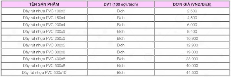 Bảng giá dây rút nhựa PVC