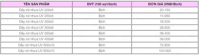 Bảng giá dây rút nhựa tại hà nội