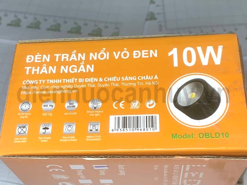 Đèn trần nổi vỏ đen thân ngắn Asia 10W OBLD10 (đèn ống bơ)