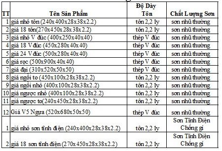 Bảng kích thước và độ dày giá đỡ điều hòa