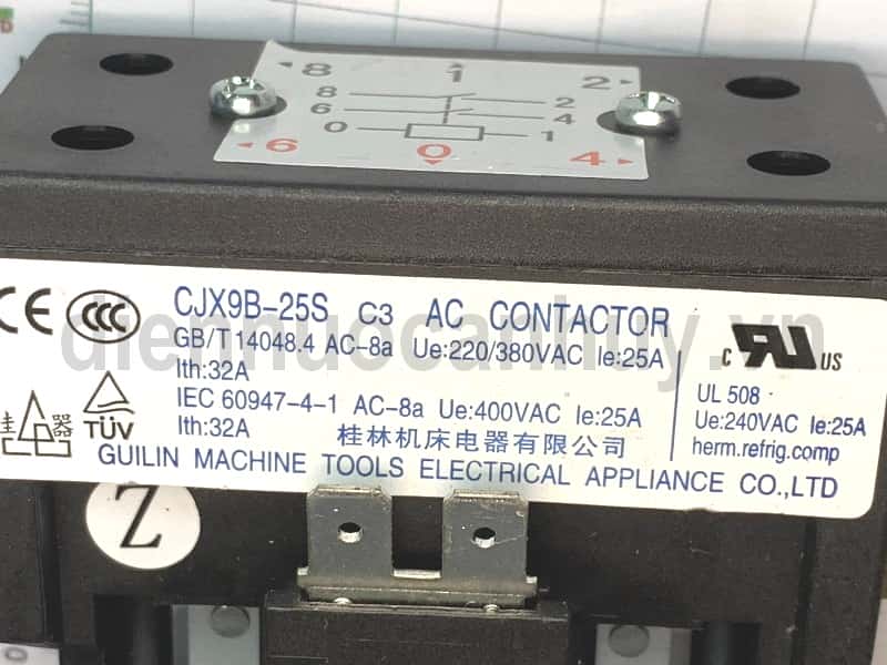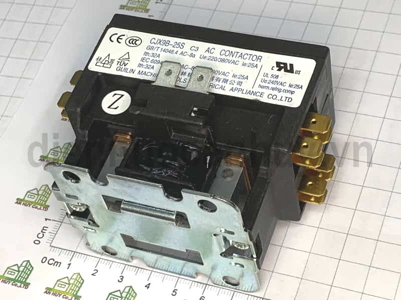 Khởi động từ (Contactor) 1 pha 32A mã CJX9B-25S - Loại 2 dây - Chân gài cho máy nén điều hòa