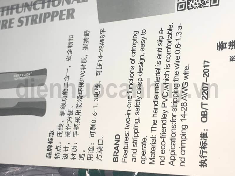 Kìm bấm cos tuốt dây đa năng 8 inch dài 200mm Berrylion