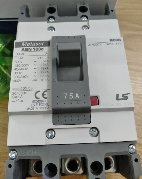 Ví dụ: 690V ~ 5kA: Với điện áp xoay chiều là 690V, dòng tiêu thụ của tải nhỏ hơn hoặc bằng 5kA thì khi đó các tiếp điểm của aptomat MCCB sẽ không bị hỏng trong vòng 1 giây .480/500 ~ 10kA: Với điện áp xoay chiều từ 480V đến 500 V thì MCCB có thể chịu được dòng điện lên đến 10kA trong vòng 1 giây