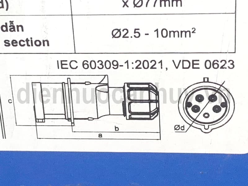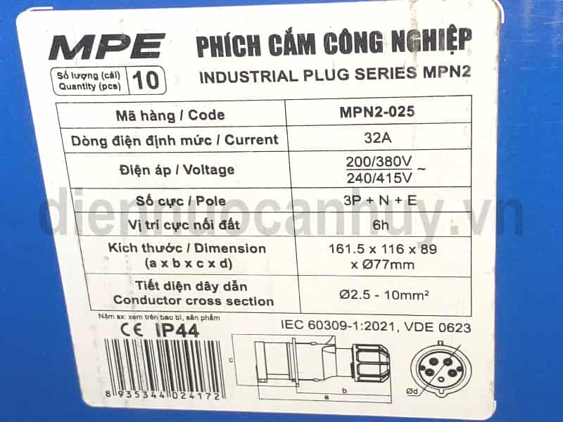 Phích cắm công nghiệp 5 chân MPE MPN2-025 Dòng điện 32A (3P+N+E) - Thiết bị kết nối điện nguồn 3 pha tiêu chuẩn IP44 chống bụi nước