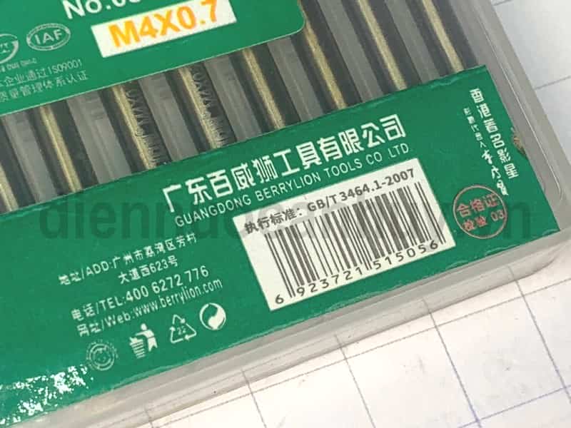 Mũi ta rô ren rãnh thẳng M4x0.7 Berrylion