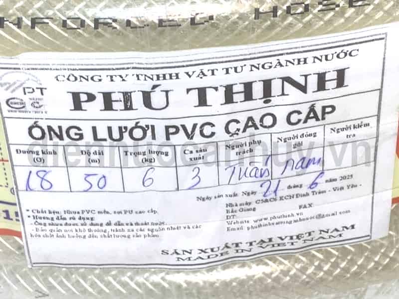 Ống nước mềm phi PVC phi 18 sợi PU mầu trắng