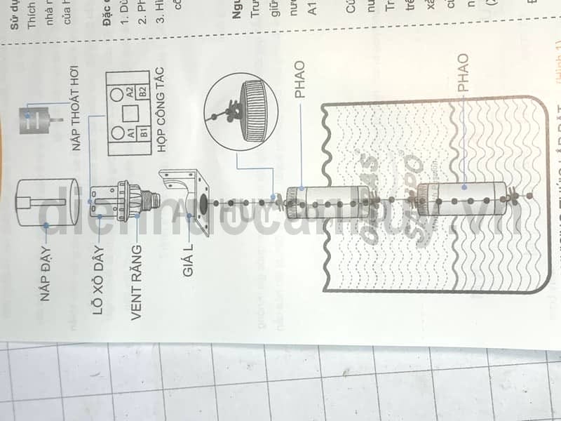 - Khi mực nước thấp (dưới mức L2), phao sẽ ngắt máy bơm, ngăn máy chạy không tải.