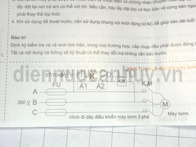 - Sơ đồ đấu dây với máy bơm 3 pha: