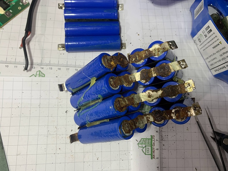 Khối pin để lâu ngày bị rỉ, bung kẽm hàn