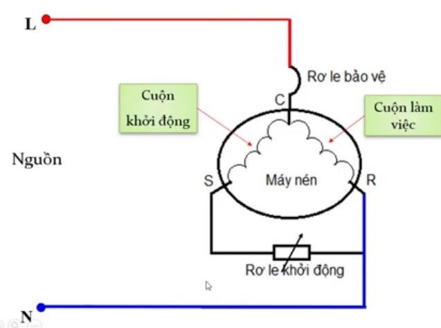 Sơ đồ đấu dây Rơ le 2 chân khởi động máy nén