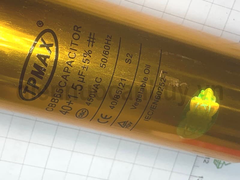 Tụ điều hòa 3 chân 40+1.5uf TPMAX xịn vỏ vàng hộp đỏ