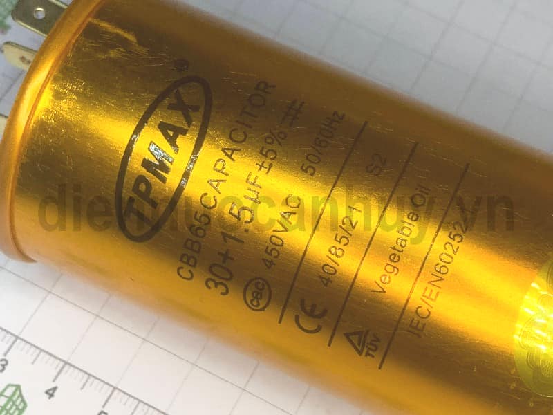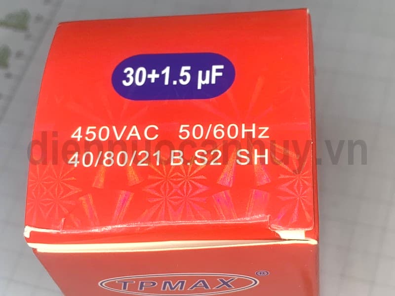 Tụ điều hòa 3 chân xịn TPMAX 30+1.5uf vỏ vàng hộp đỏ