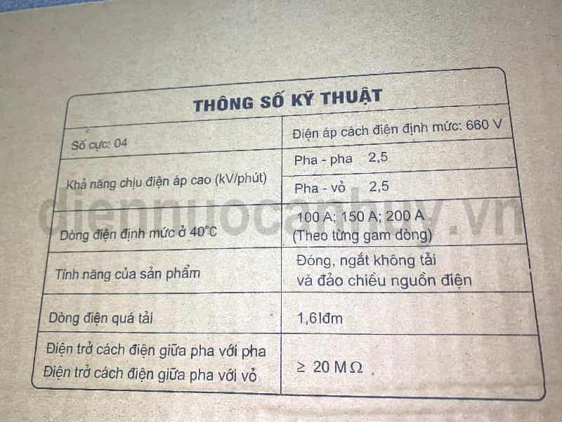 Cầu dao hộp đảo chiều 3p 150A 660V công suất lớn